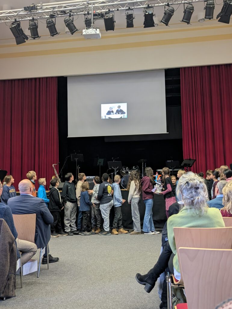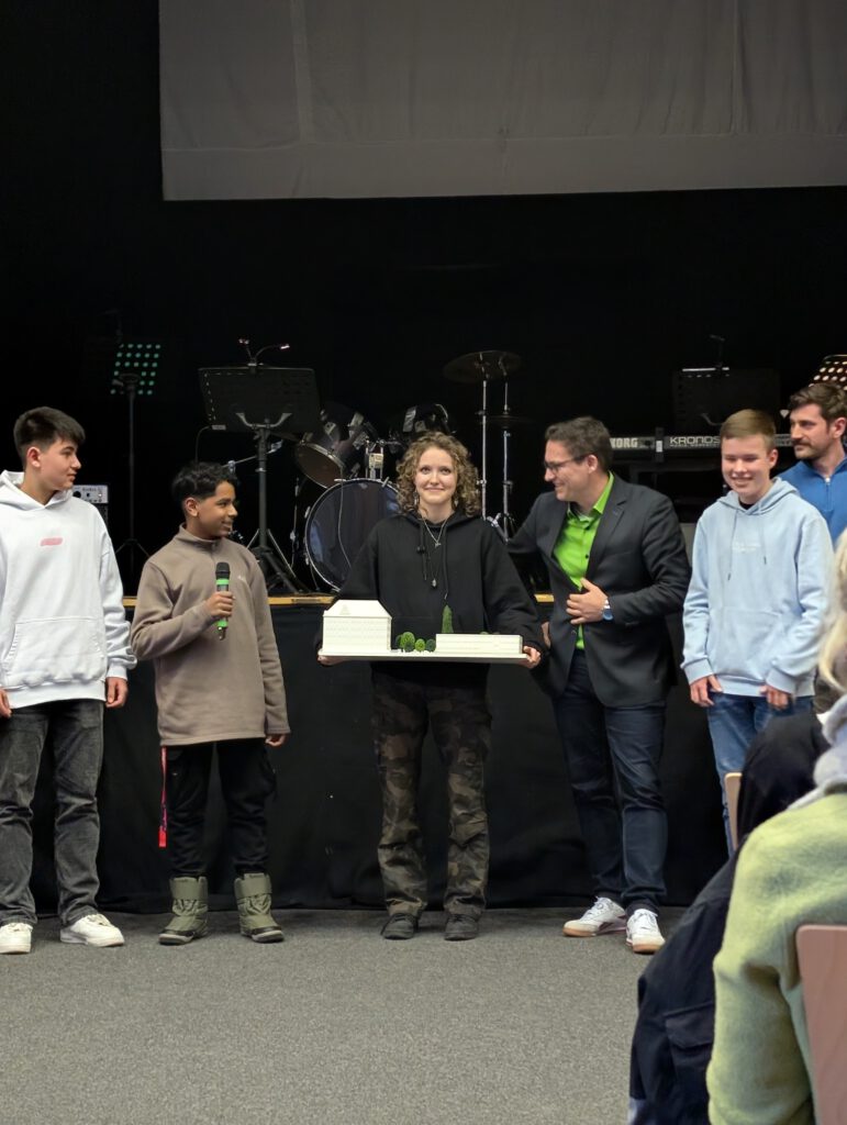 Ein besonders emotionaler Moment gehörte der Klasse 6a, der letzten Klasse, die Herr Verch noch selbst als Lehrer unterrichtet hatte. Mit einem liebevoll gestalteten Video mit seinen besten Sprüchen sowie einem kleinen Wichtelgeschenk verabschiedeten sich die Schülerinnen und Schüler von ihrem Lehrer – ein Beitrag, der für einige Lacher und bewegte Gesichter sorgte.