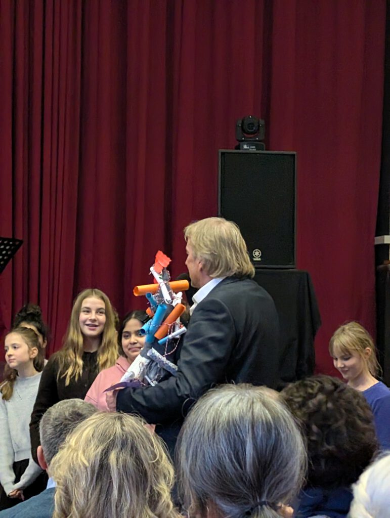Auch die IT-AG traf mit ihrem Geschenk mitten ins Herz: Sie überreichte einen maßstabsgetreuen 3D-Druck des Schulgebäudes, der das gesamte Gebäudeensemble zeigt – ein außergewöhnliches Andenken an „seine“ Schule.