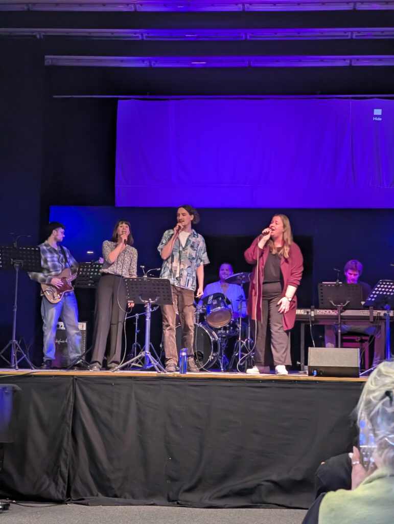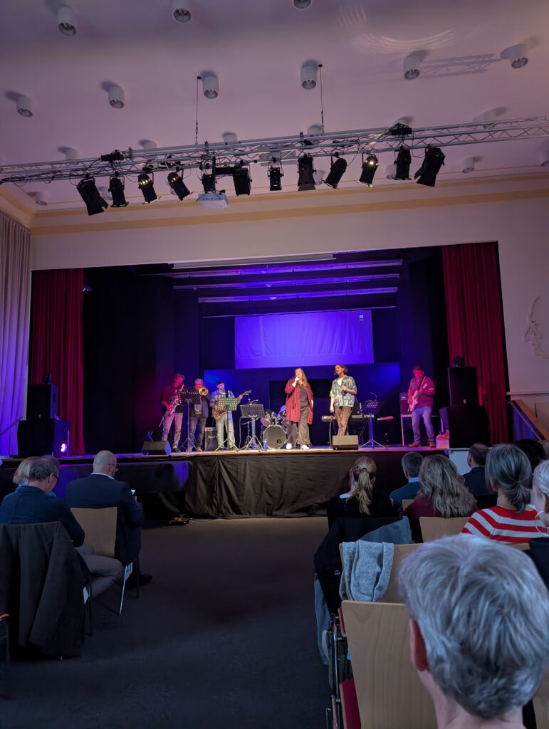 Für musikalische „Timeouts“ bzw. stimmungsvolle Halbzeitpausen sorgte die Lehrerband (Musik-Fachbereich & Guests). Mit „Männer“ von Herbert Grönemeyer und „Sonderzug nach Pankow“ von Udo Lindenberg – letzteres augenzwinkernd in Anspielung auf Norbert Verchs frühere Schulleiterstation in Weißensee – setzte die Band echte Highlights und erntete großen Applaus.