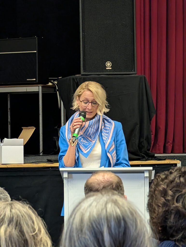 Mit einem Grußwort von Bezirksbürgermeister Frank Bewig begann der Part der Reden und Würdigungen; er würdigte das langjährige Engagement von Herrn Verch für das Stein und damit die Spandauer Schullandschaft und den Bezirk. Es folgte die Ansprache von Janika Jarling, Referatsleiterin der Schulaufsicht, die zugleich auch für Schulrätin Johanna Salsa sprach und die verlässliche, zugewandte und stets lösungsorientierte Arbeit unseress Schulleiters hervorhob. Persönliche und sehr wertschätzende Worte fand anschließend der Konrektor, der auf viele gemeinsame Jahre, erfolgreiche Spielzüge und auch herausfordernde Phasen im Schulalltag zurückblickte sowie den Berliner und Spandauer, den Preußen, den Pädagogen und den Sportsmann Verch hervorhob.
