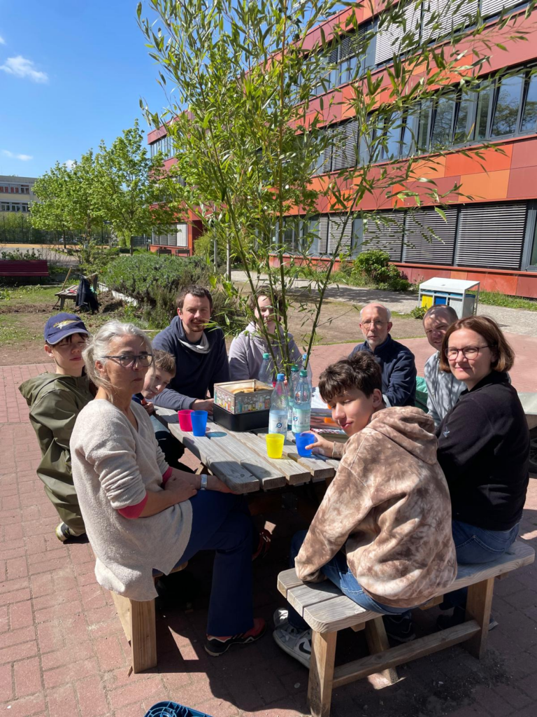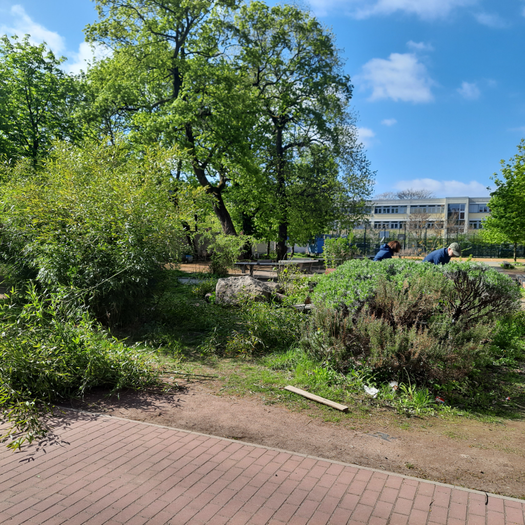 Die Gartenaktion am vergangenen Samstag (25.04.) mit engagierten Eltern, 4 Garten-AG-SchülerInnen sowie unserem Schulleiter Herrn Lehmann hat wieder etwas Luftigkeit in die Grünfläche der Stein-Oase gebracht.