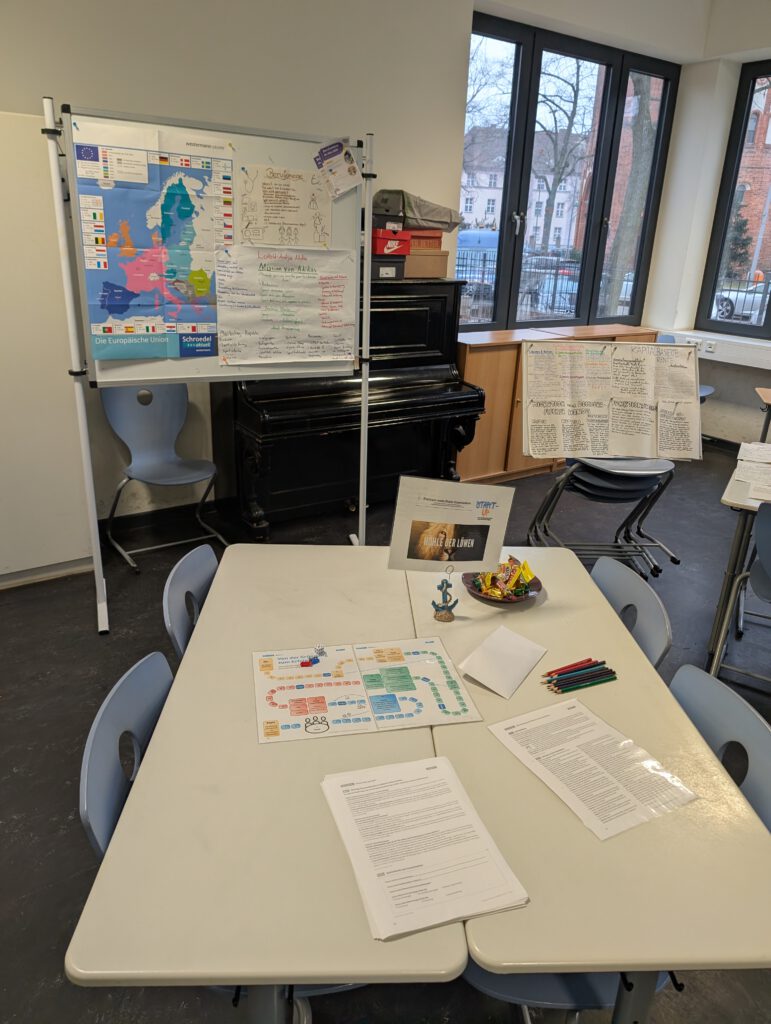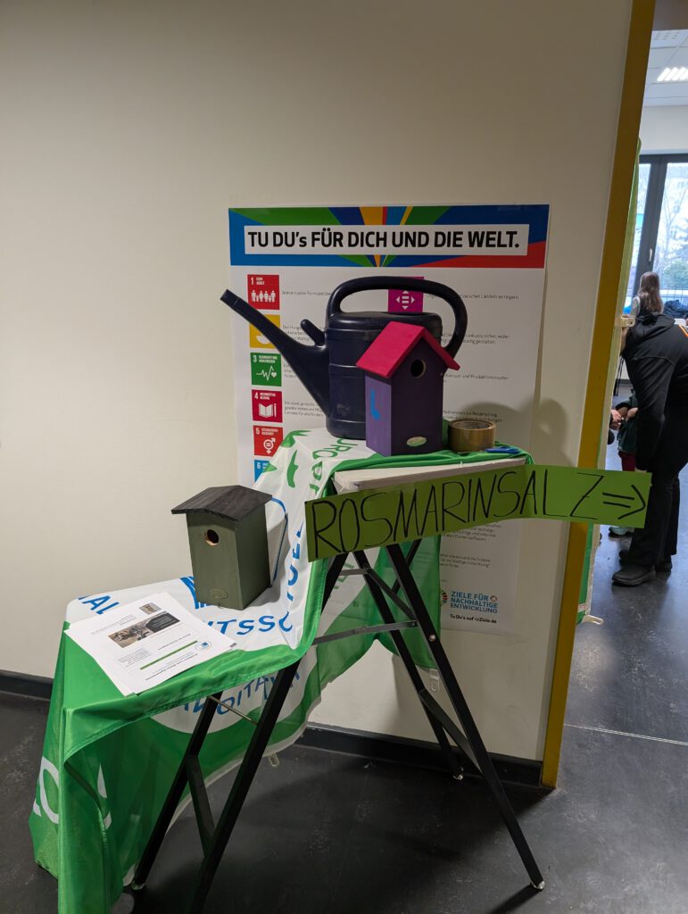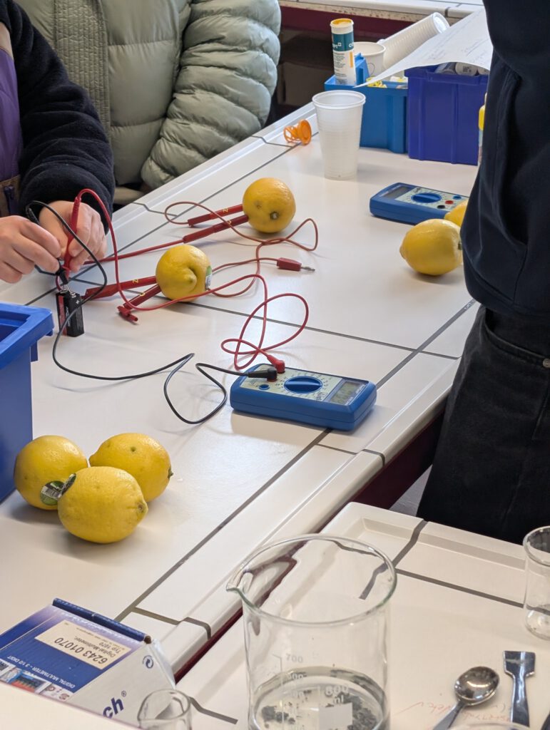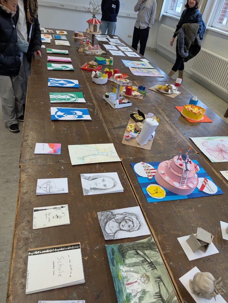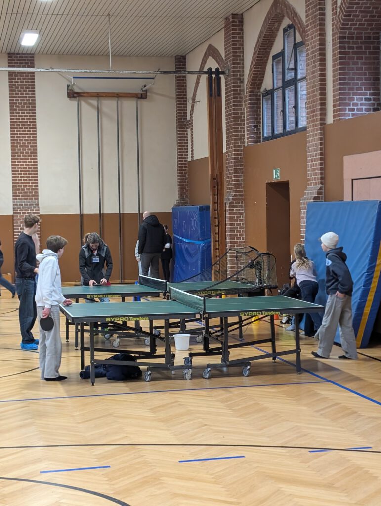Besonders beliebt waren die zahlreichen Mitmachangebote: In der Chemie durfte man sich (sicher!) die Hand „anzünden“ lassen oder Münzen versilbern, in der Biologie das eigene Lungenvolumen testen und ein Auge sezieren. Die Turnhalle verwandelte sich in einen „Jahrmarkt des Sports“, während im Fachbereich Deutsch Bücher zum Kauf angeboten wurden sowie Rätselgedichte und Märchenkisten warteten. Im Fach Geschichte konnte eine römische Rüstung anprobiert werden, im Fachbereich Englisch lud eine gemütliche Tea-Time zum Verweilen ein. In Ethik und Philosophie ging es auf die Suche nach dem weißen Kaninchen – verbunden mit spannendem Philosophieren mit Kindern. Musikbegeisterte lauschten der Bandprobe, in der Physik begeisterten eindrucksvolle Experimente, und beim Nachhaltigkeitsbeirat konnten Besucher*innen sogar eigene Seife gestalten.