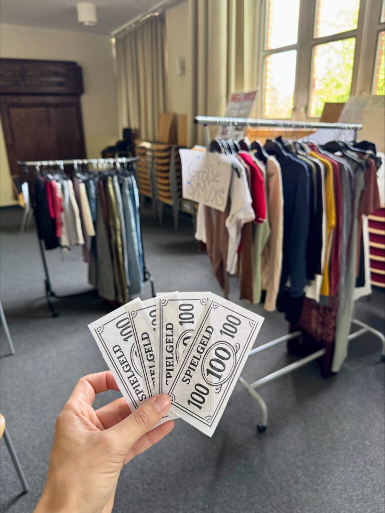 Zur Kleidertauschbörse konnte dann aussortierte Kleidung mitgebracht und im gleichen Zuge nach einem Punktesystem wieder andere Kleidung mitgenommen werden. Die Tauschbörse fand großen Anklang und war ein gelungenes Event, das nun einmal im Jahr durchgeführt und auch für andere Jahrgänge zugänglich gemacht werden soll.