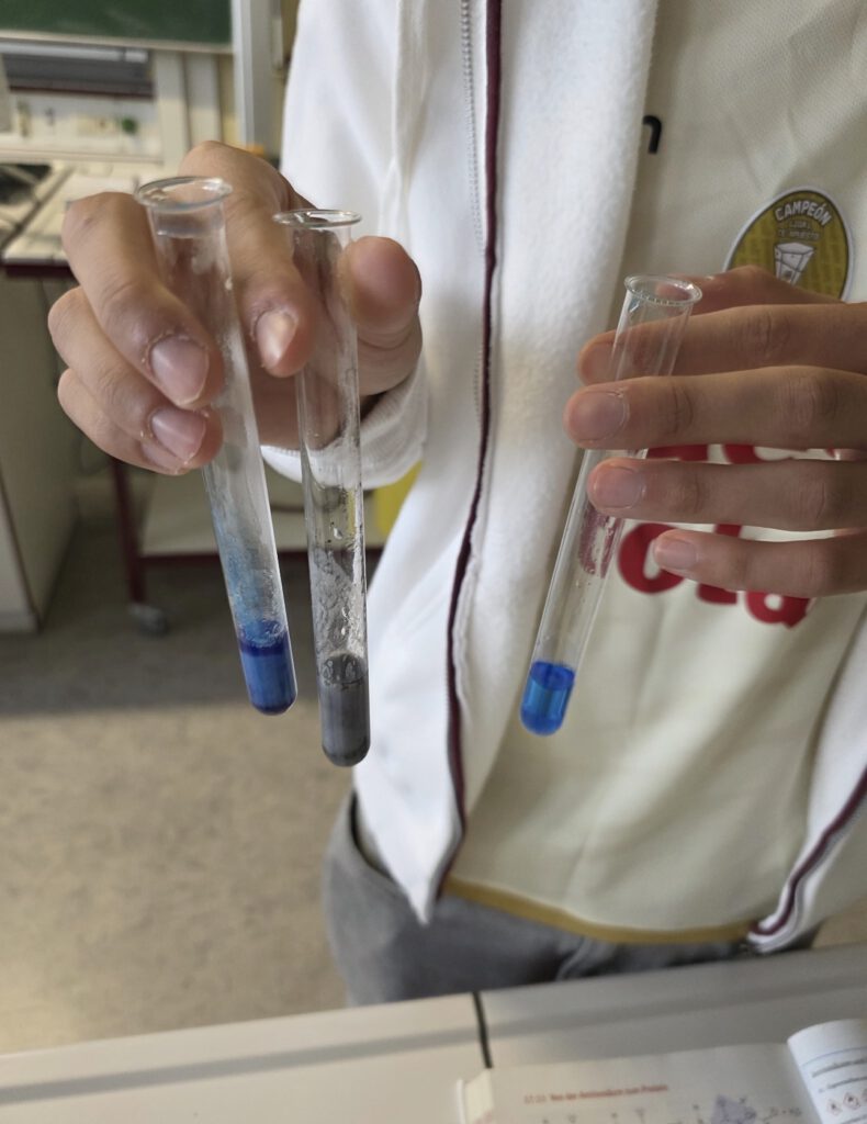 Im Fach Chemie lernen die Schülerinnen und Schüler Stoffe und Stoffumwandlungen fachgerecht zu untersuchen. Das Experimentieren mit einer Fülle alltäglicher Chemikalien wie Farbstoffen, Reinigungsmitteln und Kunstfasern bildet den Einstieg in eine naturwissenschaftlich adäquate methodische Ausbildung. Die Schülerinnen und Schüler lernen gleichermaßen naturwissenschaftliche und lebensweltbezogene Fragestellungen zu entwickeln.